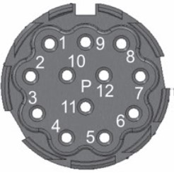 Receptacle straight 12-pin P-part 20° incl. pin...