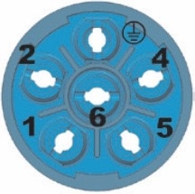 Power-Receptacle 90° axial sealing, 6 pin E-part incl. pin contacts crimp 021.101.2000 (HS-Code: 85366990 / COO: DE)