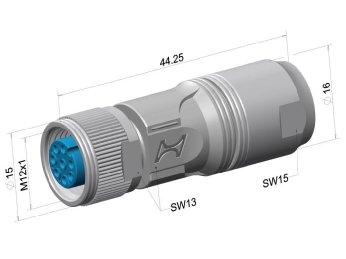 M12 cable connector straight; 8-pin A-code, incl. Hyperboloid-socket contacts 0,24-0,50mm² (AWG24-20), clamping 4.5-6.0mm (HS code: 85389099 / COO: DE)